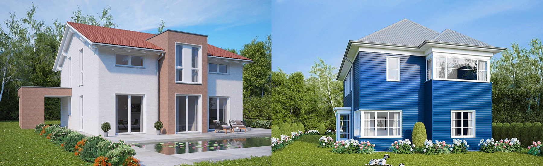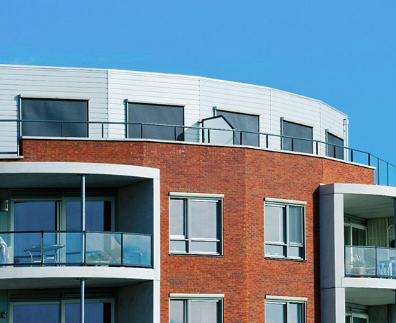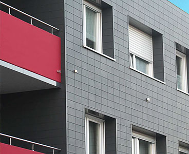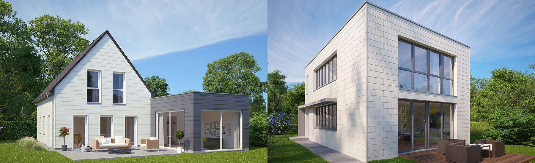 Vorgehängte, hinterlüftete Fassaden mit verschiedenen Optik-, Verlege- und Farbvariationen.